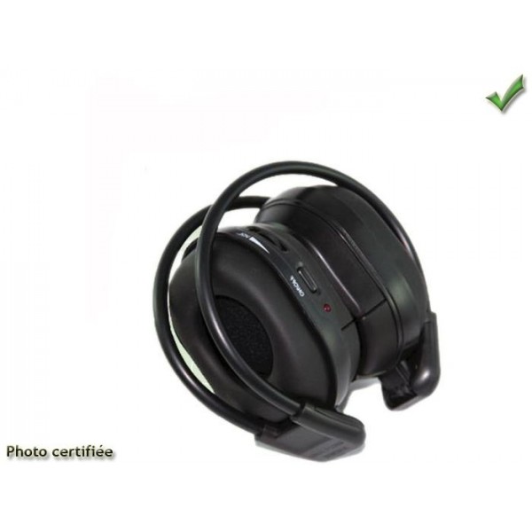 Casque leger sans fil pour utilisation entre autres avec les ecrans TFT embarques. Double emetteur infrarouge Interrupteur M A reglage de volume et balance Alimentation 3Vdc 2 x AAA Bande passante 30Hz 20kHz Rapport signal bruit sup a 70dB Separation des canaux sup a 60dB