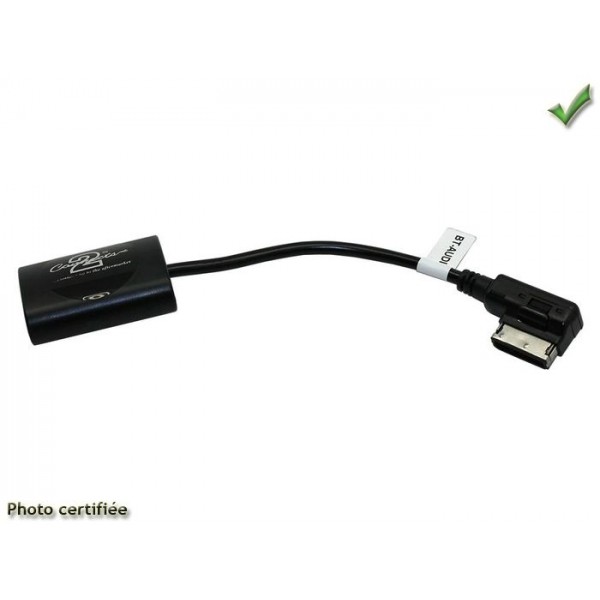 Permet sur les audi equipe de la prise AMI (Audi Music Interface) dans le boite a gant ou dans l accoudoir d ecouter la musique en AD2P de votre telephone sur l ensemble radio origine compatible sur: AUDI A3 2009> A4 2009> A5 2009> A6 2009> A7 2009> A8 2009> Q5 2009> Q7 2009> R8 2009> TT 2009>