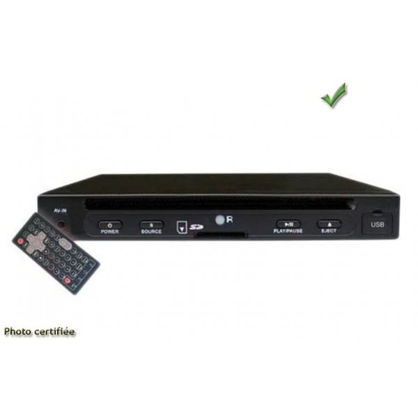 Il peut-etre encastre ou suspendu Il contient l electronique le plus moderne pour la lecture de DVD CD video CD Audio fichiers MP 3 MPEG 4 CD R CD RW muni d un port USB et d un port carte SD Une memoire interne offre l avantage de pouvoir couper l alimentation sans perdre la position de lecture du DVD Fourni avec une telecommande cordon 12V de batterie et supports de montage Par ailleurs ce lecteur DVD comporte un cache qui protege l electronique contre la poussiere PAL et NTSC Livre avec materiel de connexion et rail de montage DIN Protection d enfants Memorisation du point d arret de la lecture apres coupure de l alimentation